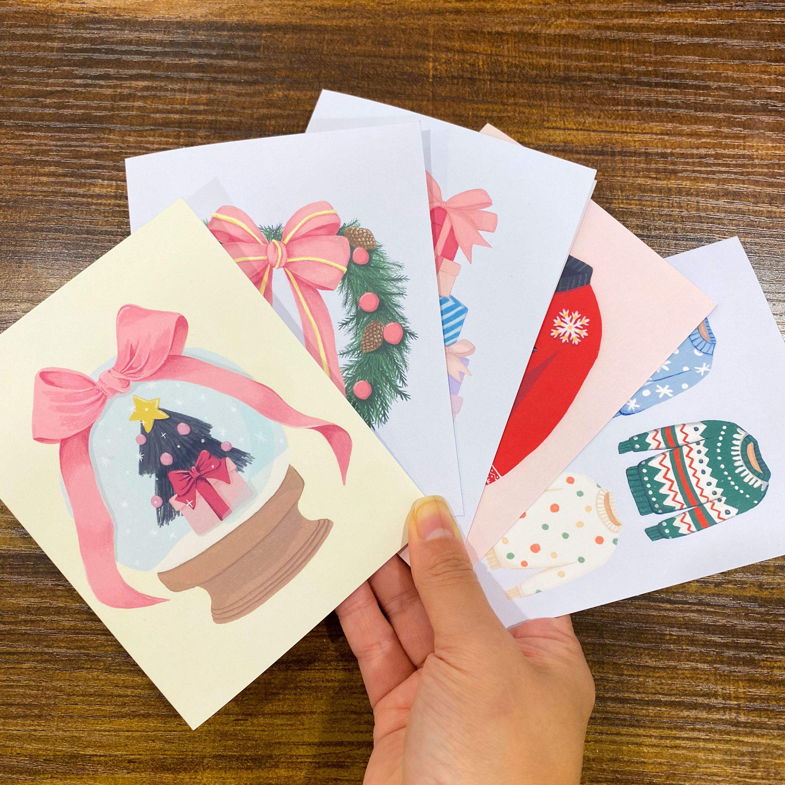Coquette bow christmas cards pack(Set of 5 or 10 boxed cards)